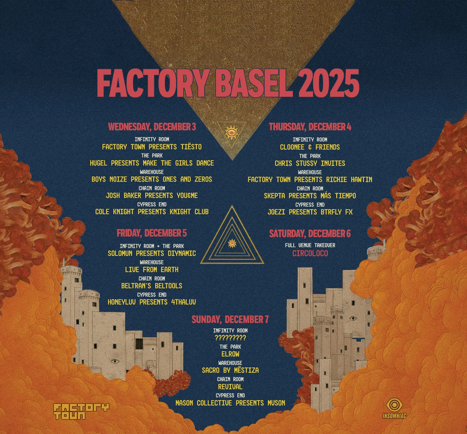 Factory Town is seven acres of industrial grit in the heart of Hialeah — once a mattress factory, now transformed into Miami’s ultimate open-air entertainment district. Steel, concrete, and endless sky frame a landscape of warehouses, stages, and monuments to sound, where the city’s underground energy runs unfiltered from dusk until dawn.